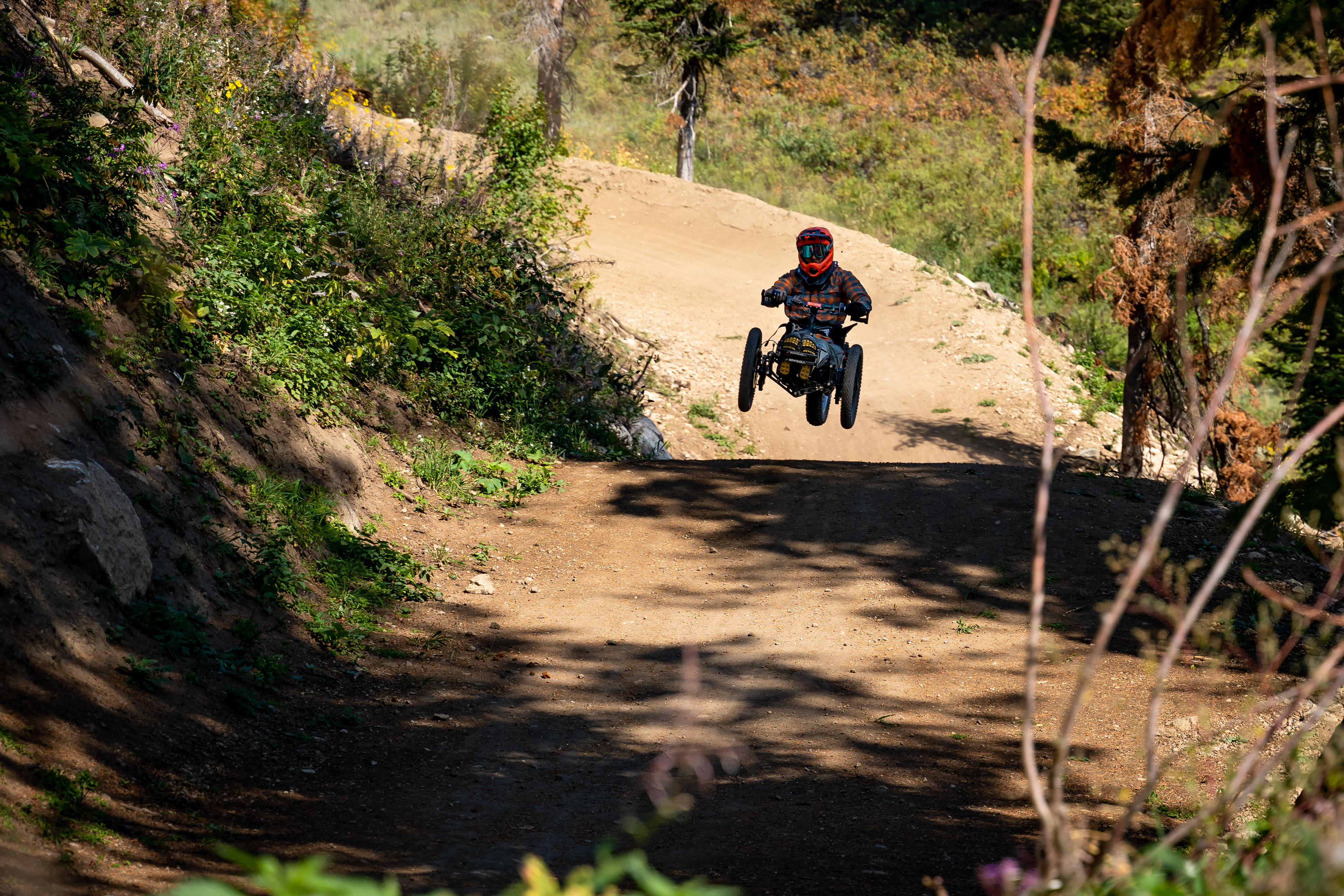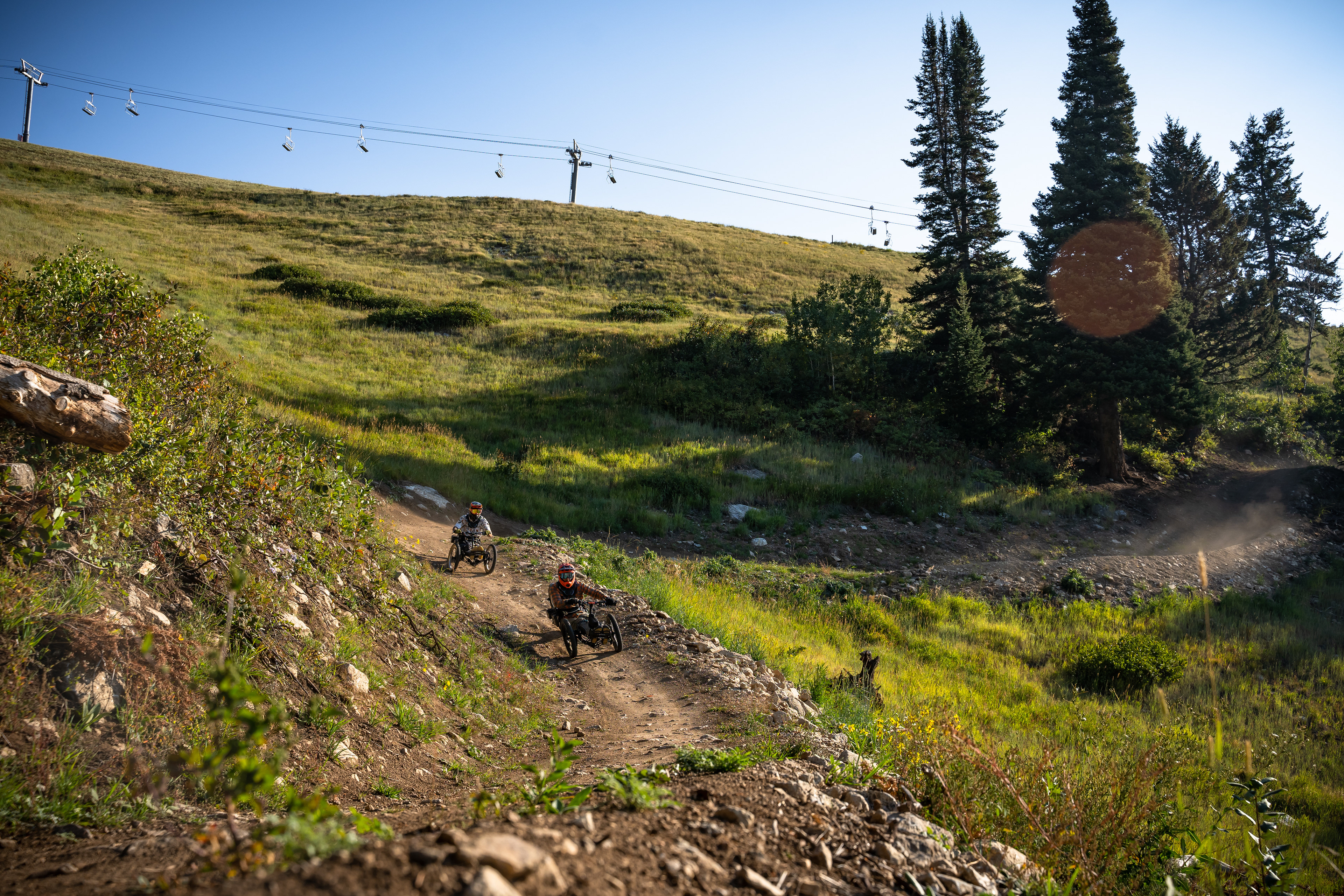 Joe Stone, Director of Mission at Teton Adaptive, and Ranyon D'arge, JHMR's Mountain Design Manager, teamed up to rethink what's possible with JHMR's newest trail, Deepest Darkest. Inspired by a conversation and their mutual connection to Pierre Bergman, a JHMR employee whose life was forever changed due to a biking injury, they created a universal trail design that not only brings flow, speed, and excitement to adaptive and non-adaptive riders alike but also strengthens the bond within the biking community.